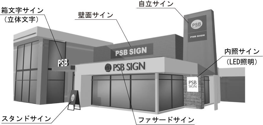 PSB合同会社は、東京都新宿区・飯田橋に本社を構える、サイン(看板)製作の専門会社です。
